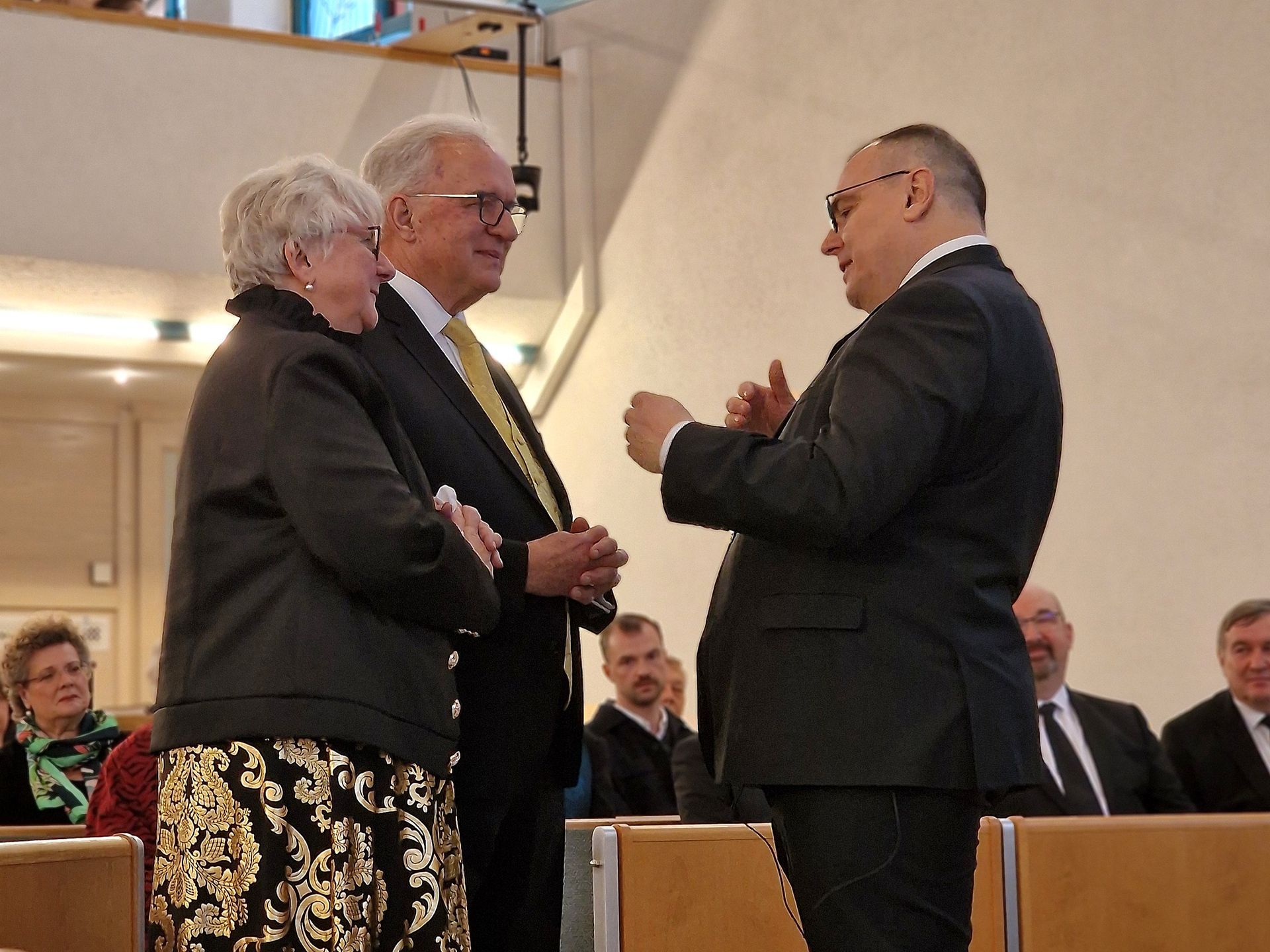 Im Gottesdienst selber diente auch Priester Rögner aus der Gemeinde Peiting mit. Mit dieser Gemeinde war das Jubeläumspaar eng verbunden. Auch unser lieber Bezirksevangelist Kerhoff diente im Gottesdienst mit und konnte viele wertvolle Gedanken dem Brautpaar mitgeben.